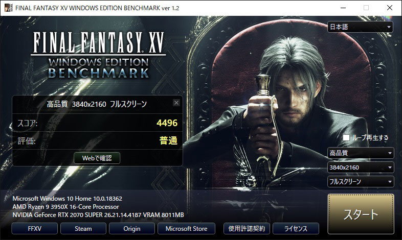 気を良くして、「FINAL FANTASY XV WINDOWS EDITION ベンチマーク」もトライ。