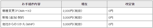 変更となるのは、機種変更(FOMA→Xi)、新規(追加)契約、MNPの際にかかる契約事務手数料。