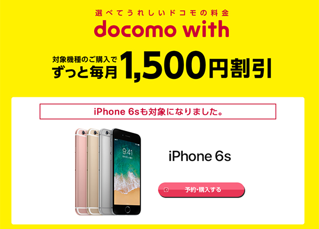 ・オンラインショップ限定特典iPhone 6s(32GB)を「docomo with」へ