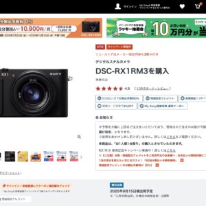 レンズ一体型コンパクトカメラの最上位機種「RX1R III」(DSC-RX1RM3)、および純正アクセサリーのソニーストア納期情報が更新。