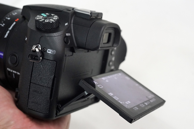 背面の3.0型液晶モニターは上方向に約107度、下方向に約42度チルトという可動範囲は、Eマウントと同じ。