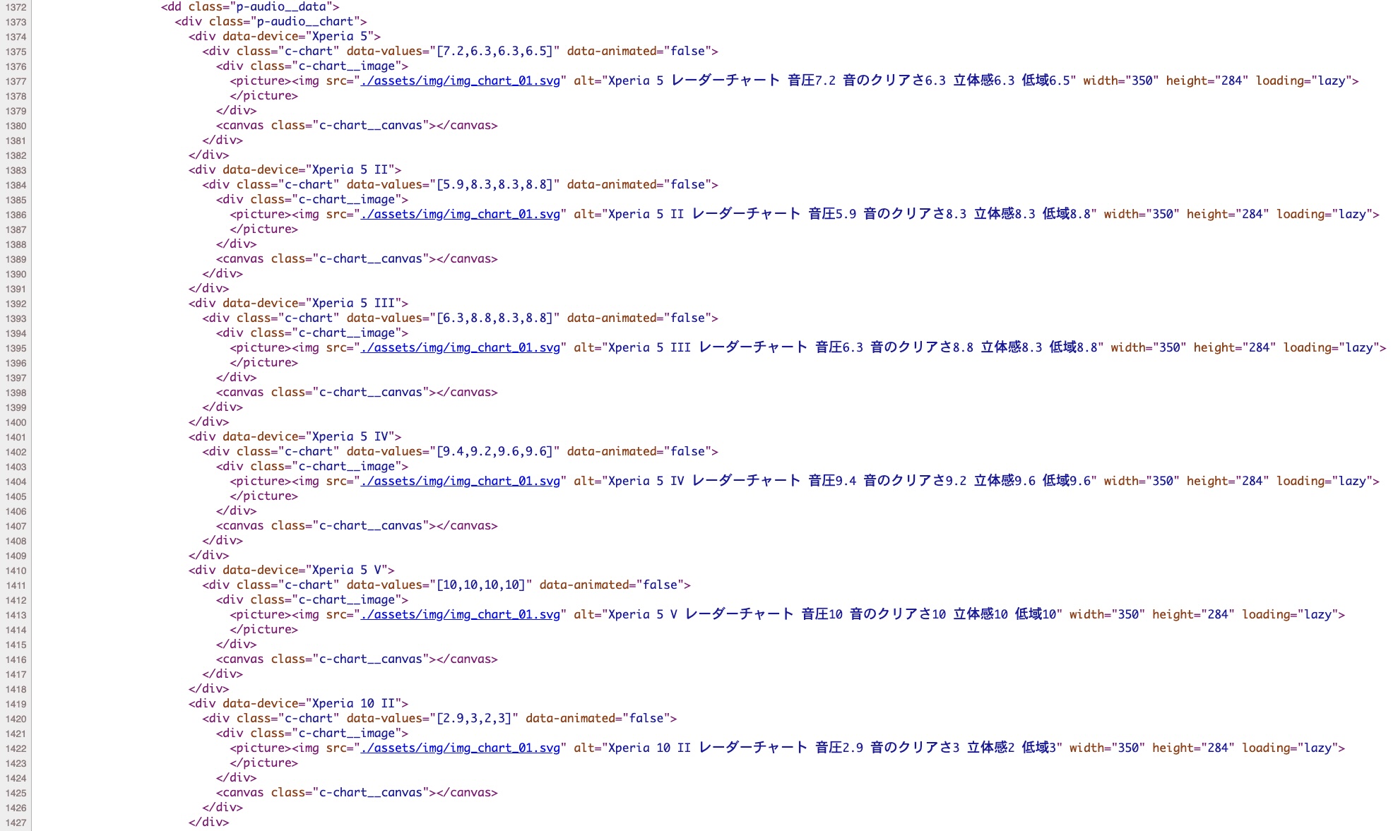 そこでソースコードを確認してみると、数値化されたデータが記載されていた。