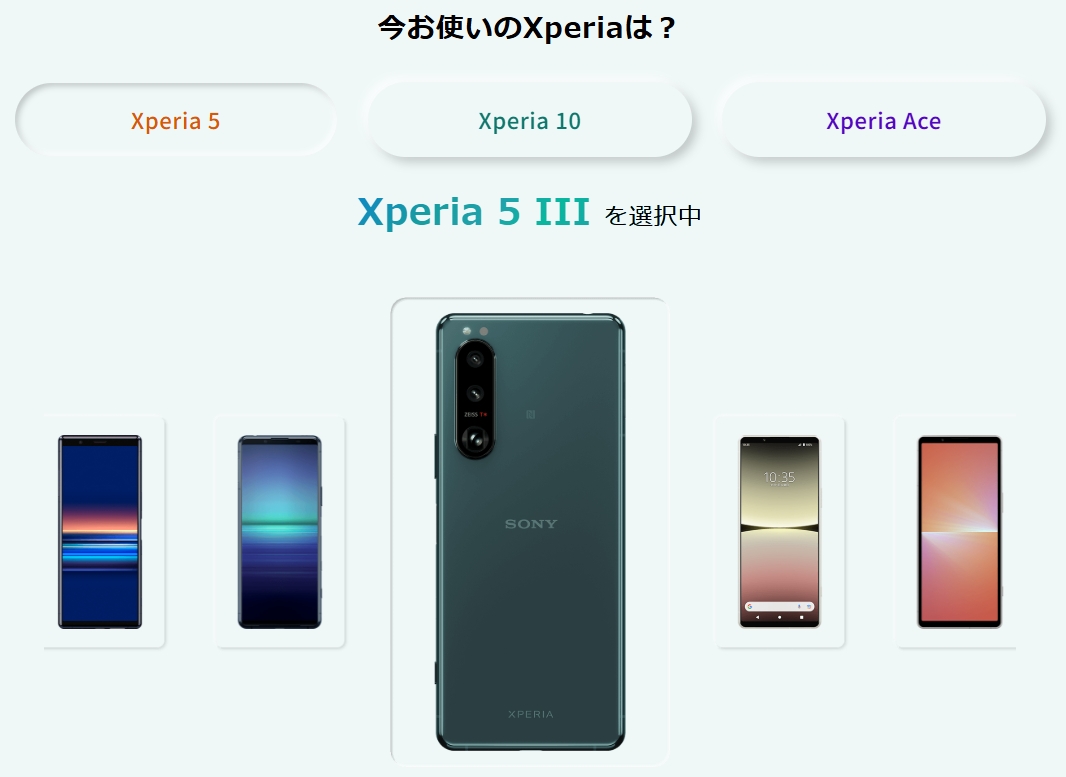初代Xperia 5以降のXperia 5シリーズ、そしてXperia 10シリーズ、Xperia Aceシリーズまで比較モデルとして登場している。