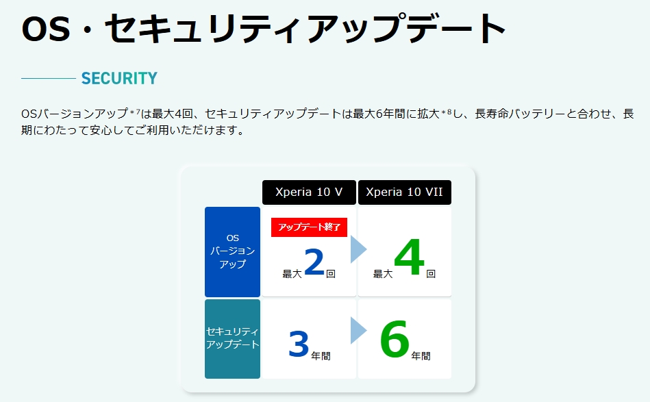 ・OSアップデート最大4回、6年間のセキュリティアップデートに対応