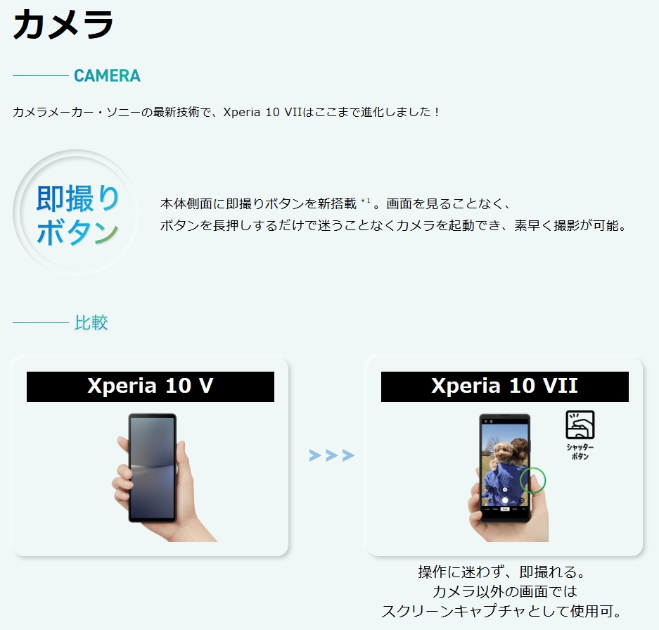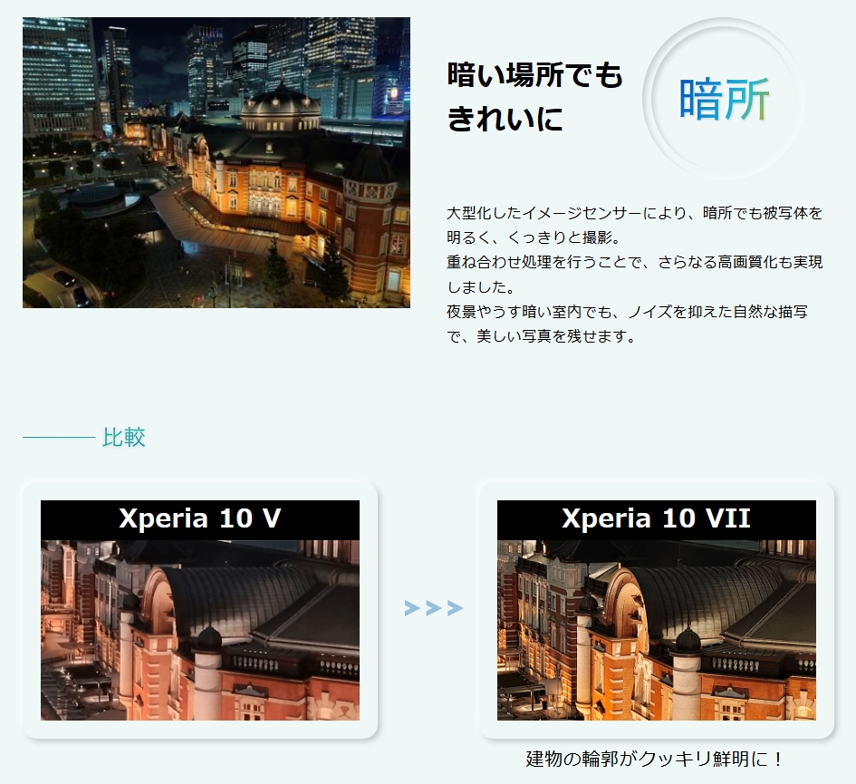 手持ちのXperiaから、「Xperia 10 VII」に乗り換えたときのメリットが一目でわかるようになっている。