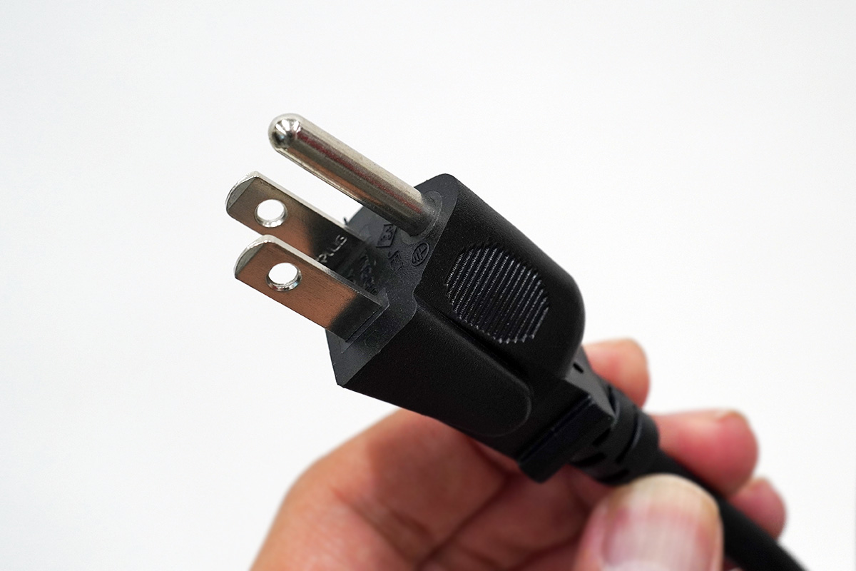 電源コードが3ピン、せめて2ピンのアース付きアダプタは付属してほしかった。