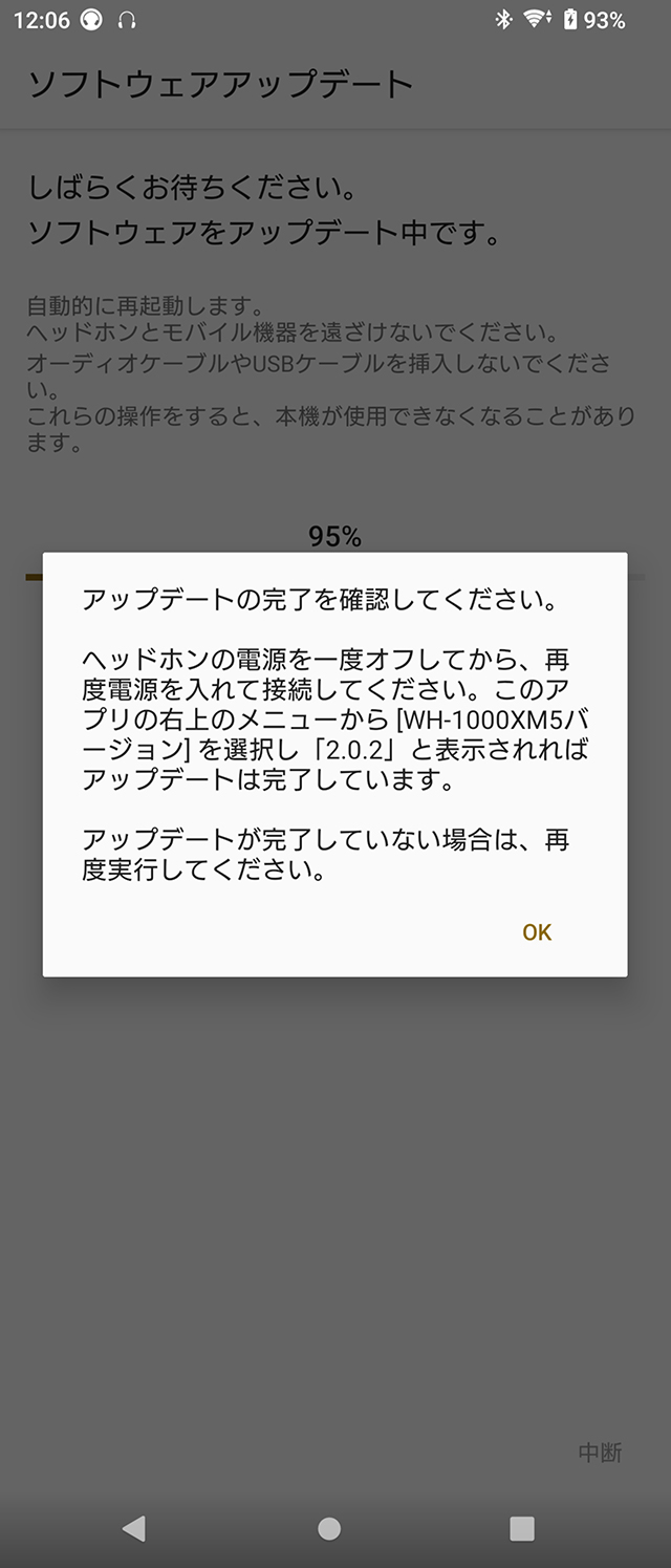 更新中にヘッドホンの電源をOFFには絶対にしないようにしよう。