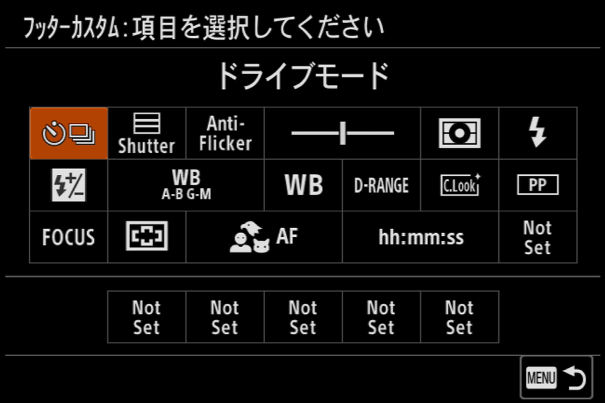 さらに静止画撮影のファインダーに、「フッター(ファインダー右下部分)」の表示を自分の好みに設定できる。