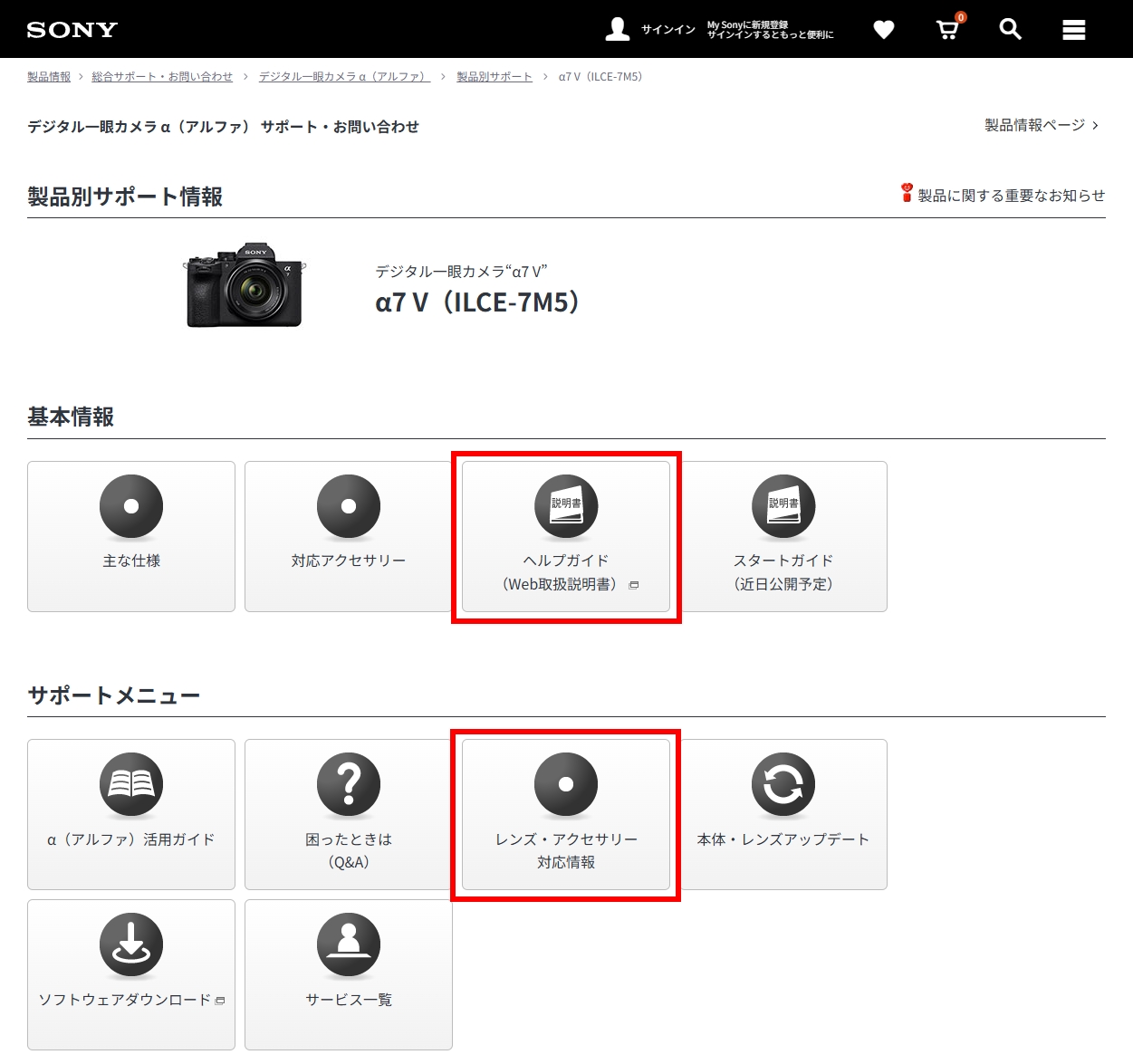 ・α7 V「ILCE-7M5 | 機種別サポート | デジタル一眼カメラ α(アルファ) | サポート・お問い合わせ | ソニー