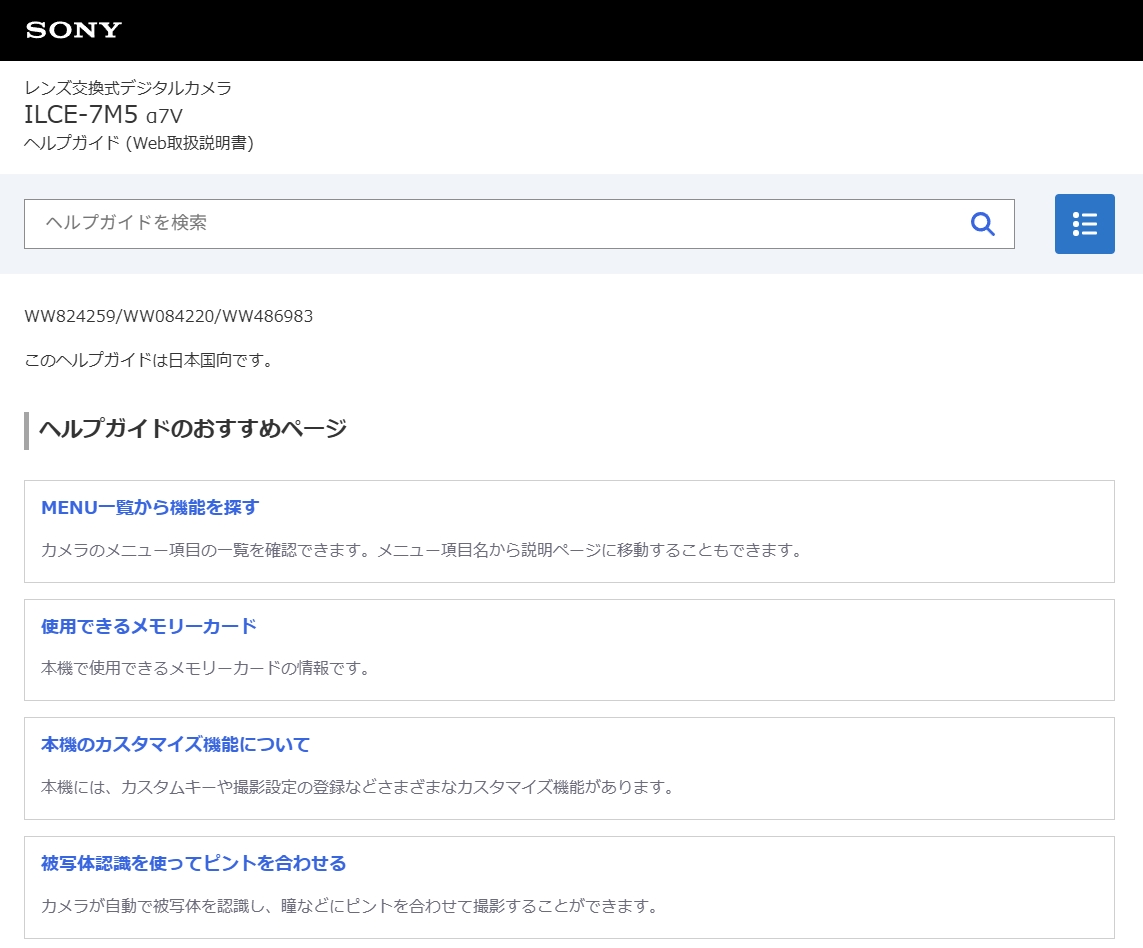 デジタル一眼カメラ α7V「ILCE-7M5」サポートページ公開。ヘルプガイド・新機能の詳細をチェック可能。