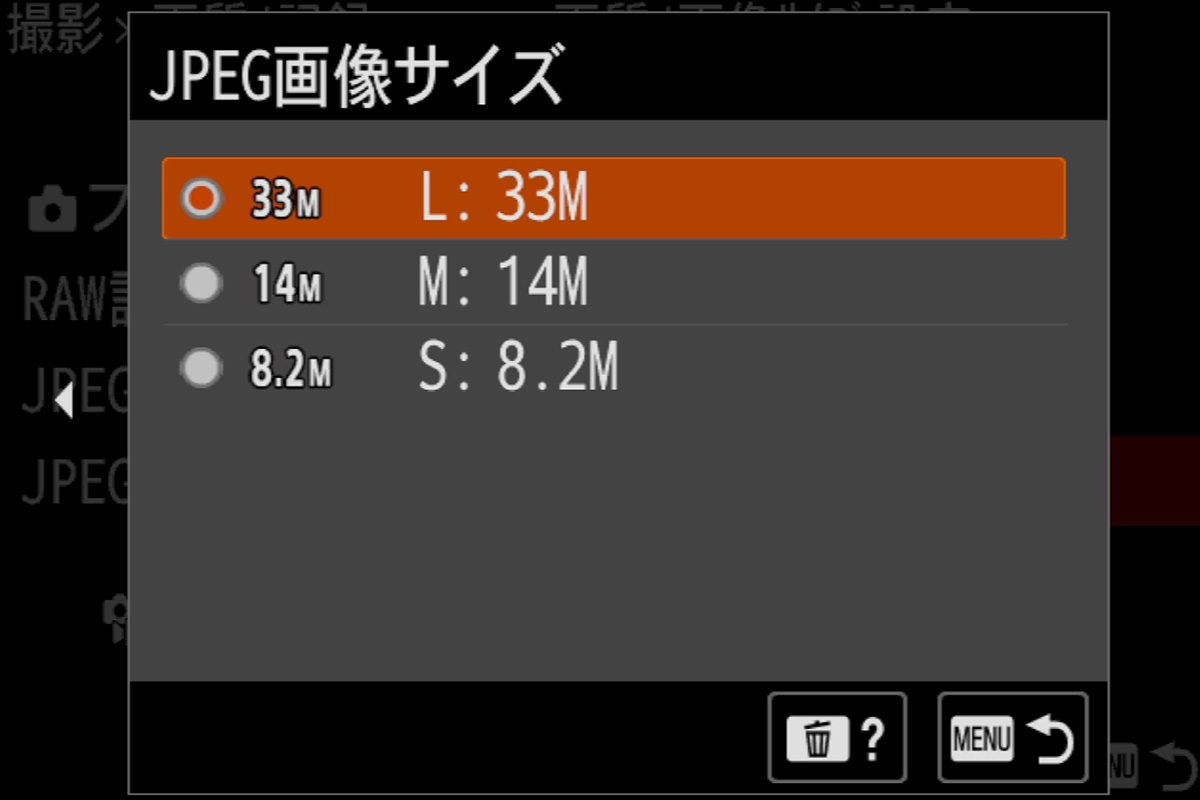 従来あった「ロスレス圧縮(M)(4608x3072)」と「ロスレス圧縮(S)(3504x2336)」はなくなっている。