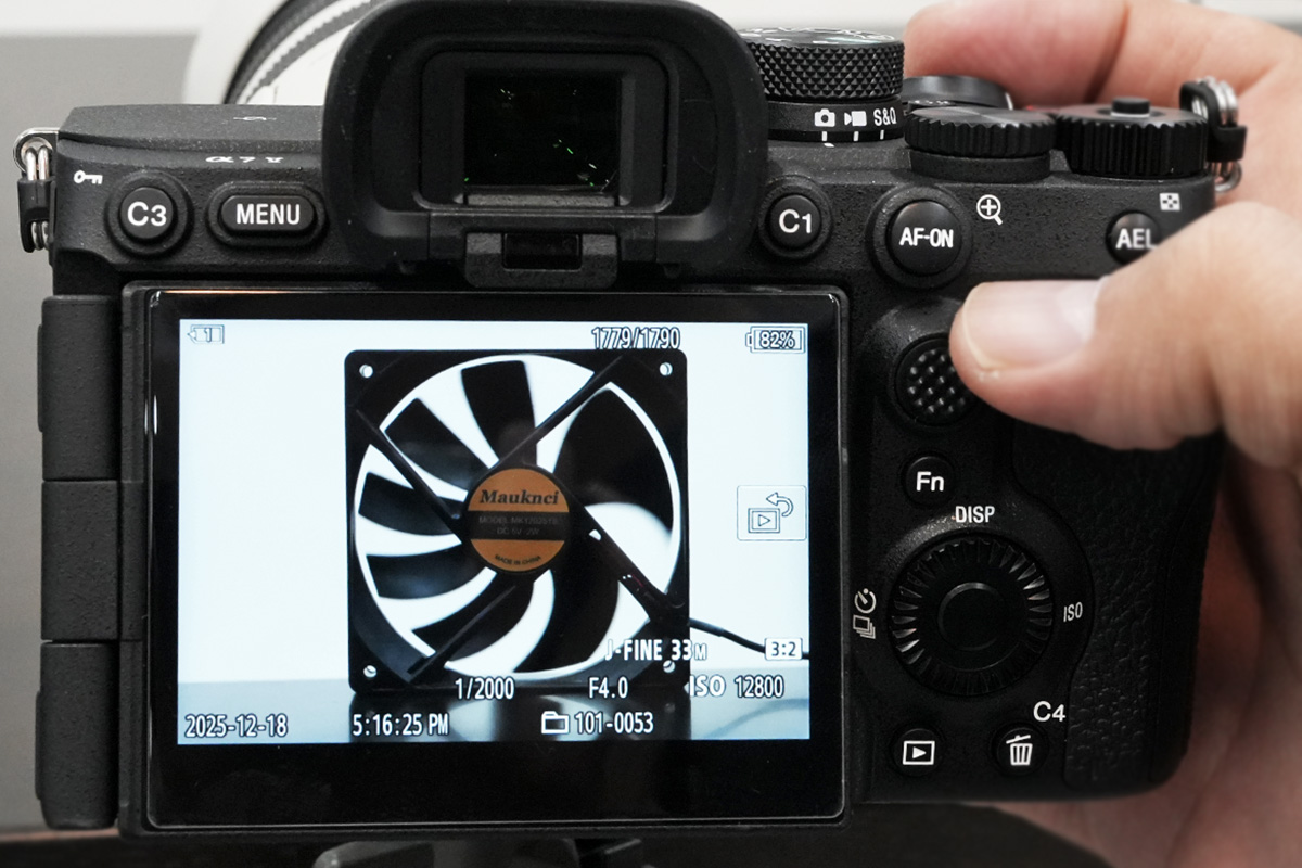 ソニー公式では「アンチディストーションシャッター」と謳われてないものの、ファンの羽が認識できる程に動体歪みが抑えられている。
