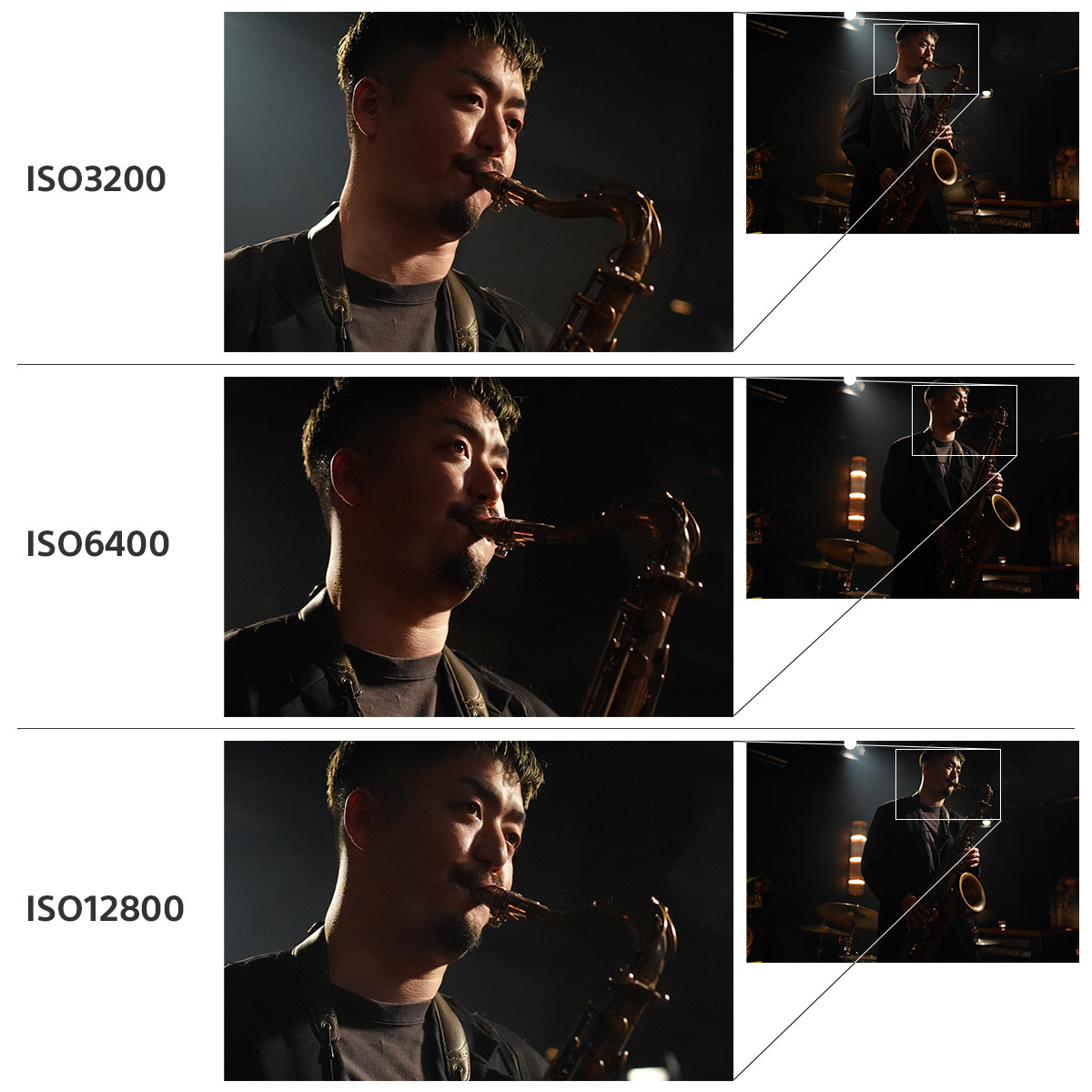標準ISOは100-51200、静止画拡張時 ISO 50-204800(動画拡張時 100-102400)。