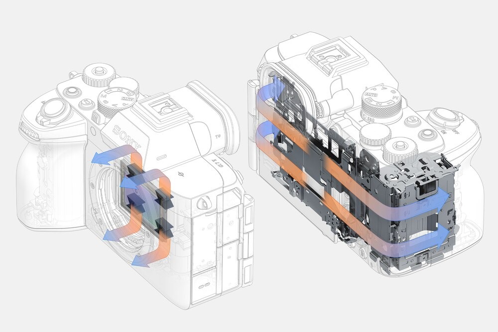 α7IVはソニー独自のΣ(シグマ)形状のグラファイト素材を2つだったものから、α7 Vでは4つに増加してより高い放熱効果を得られる。
