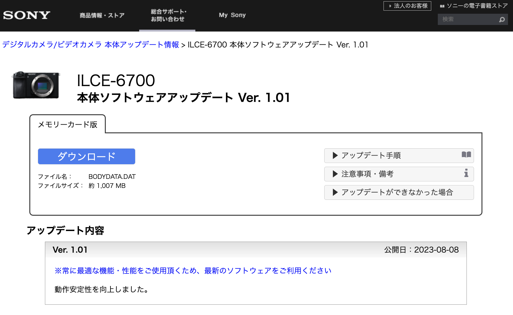・ILCE-6700本体ソフトウェアアップデート Ver. 1.01