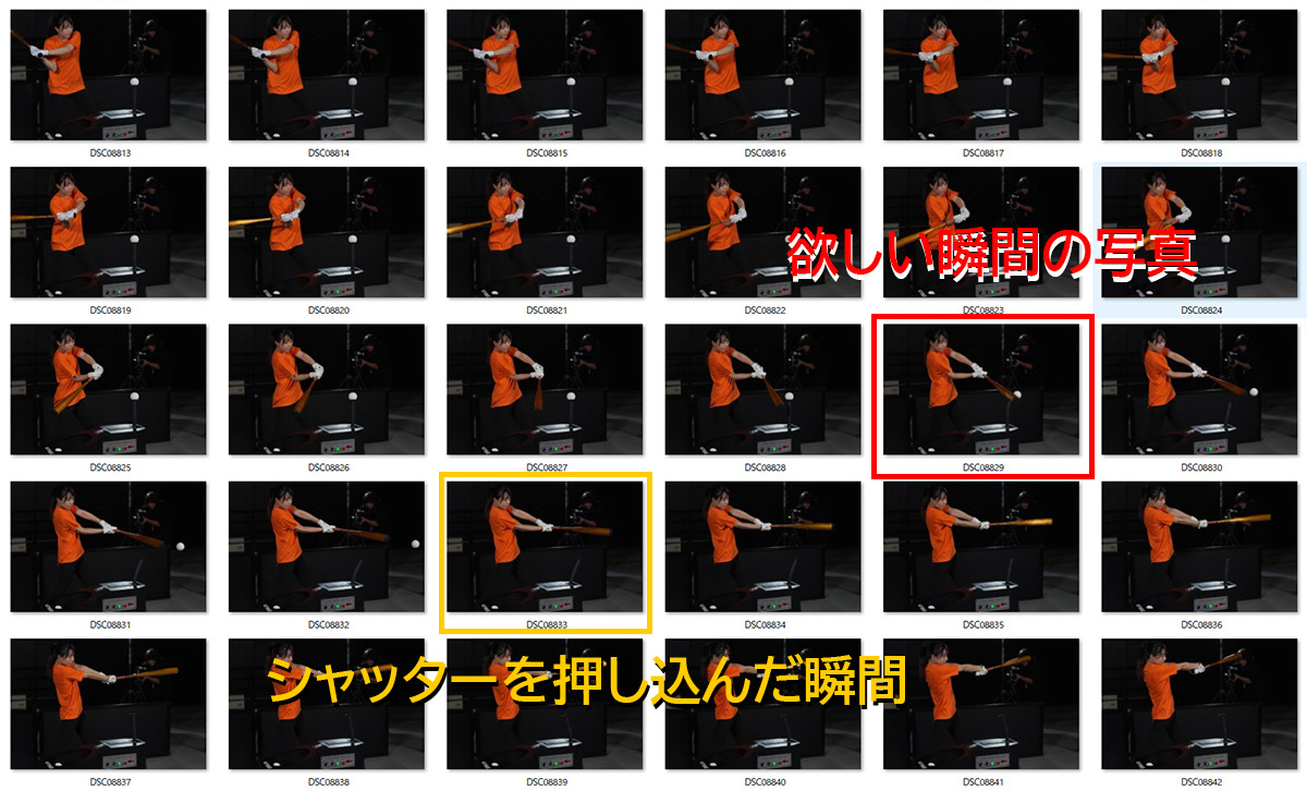 さらに、プリ撮影時間を1.0秒はそのままに、連続撮影速度30コマ/秒のとした場合。