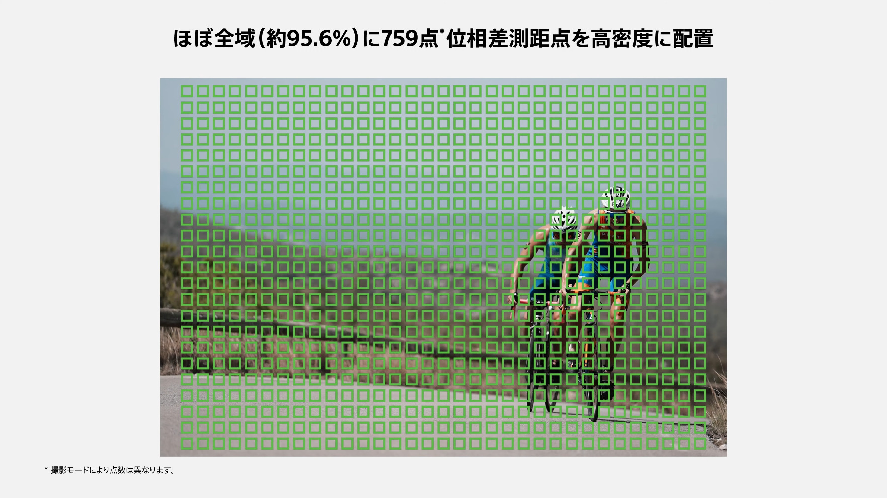 イメージセンサーの撮像画面のほぼ全域(約95.6%)759点の選択可能な位相差測距点を高密度に配置。