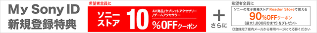 まだ一度もソニーストアを利用したことがないという場合でも、My Sony IDを新規登録すると、すぐに利用できるソニーストア割引クーポン(10%OFF)をもらうこともできる。