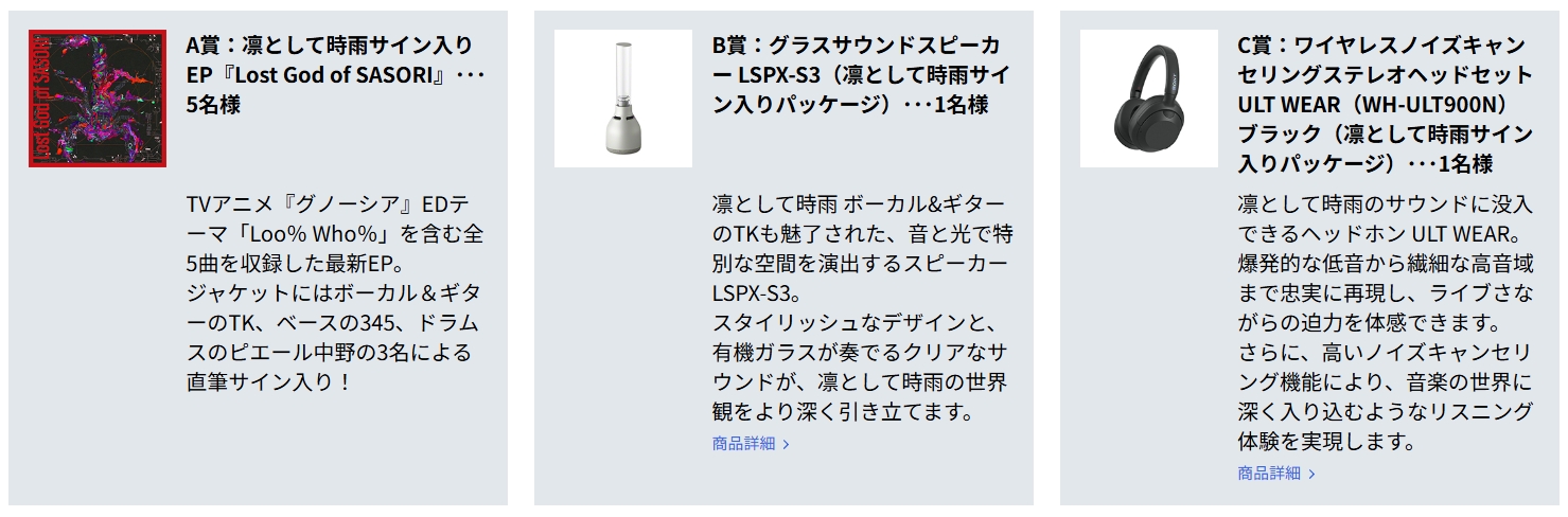 凛として時雨とソニーストアのコラボイベント開催を記念し、プレゼント抽選キャンペーンを実施。