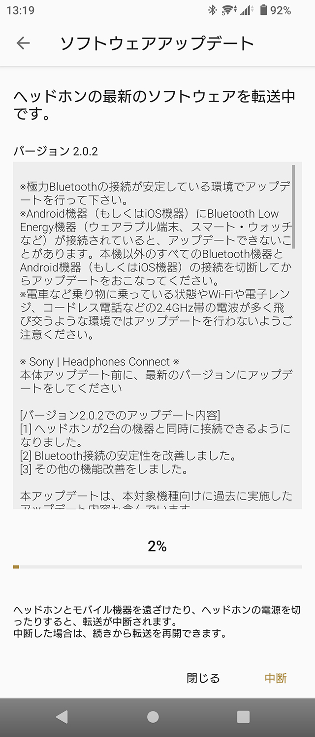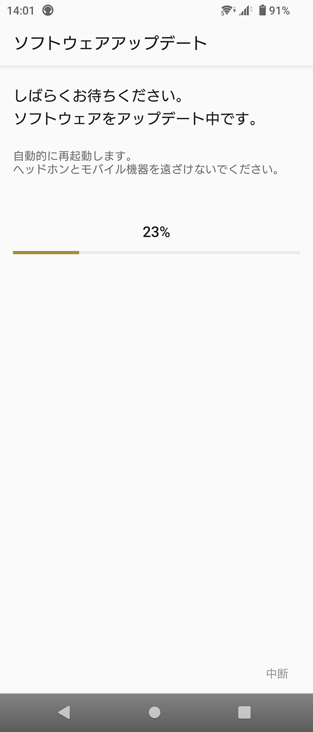更新中にヘッドホンの電源をOFFにはしないように注意。
