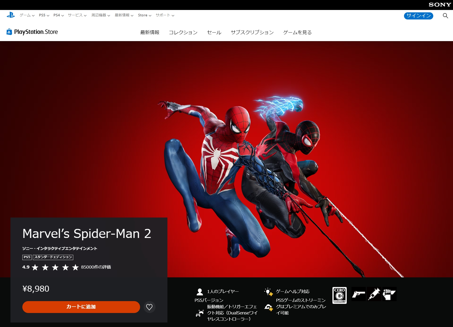 新型PS5にソフト(8,980円)が同梱されて通常モデルと同額66,980円(税込)!PlayStation 5「Marvel’s Spider-Man 2(マーベルスパイダーマン2)」同梱版が、ソニーストアで販売開始!