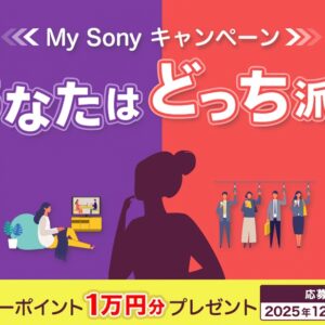 ソニーの会員プログラムMy Sony特典の、2025年12月の「あなたはどっち派?My Sonyキャンペーン」が開催。
