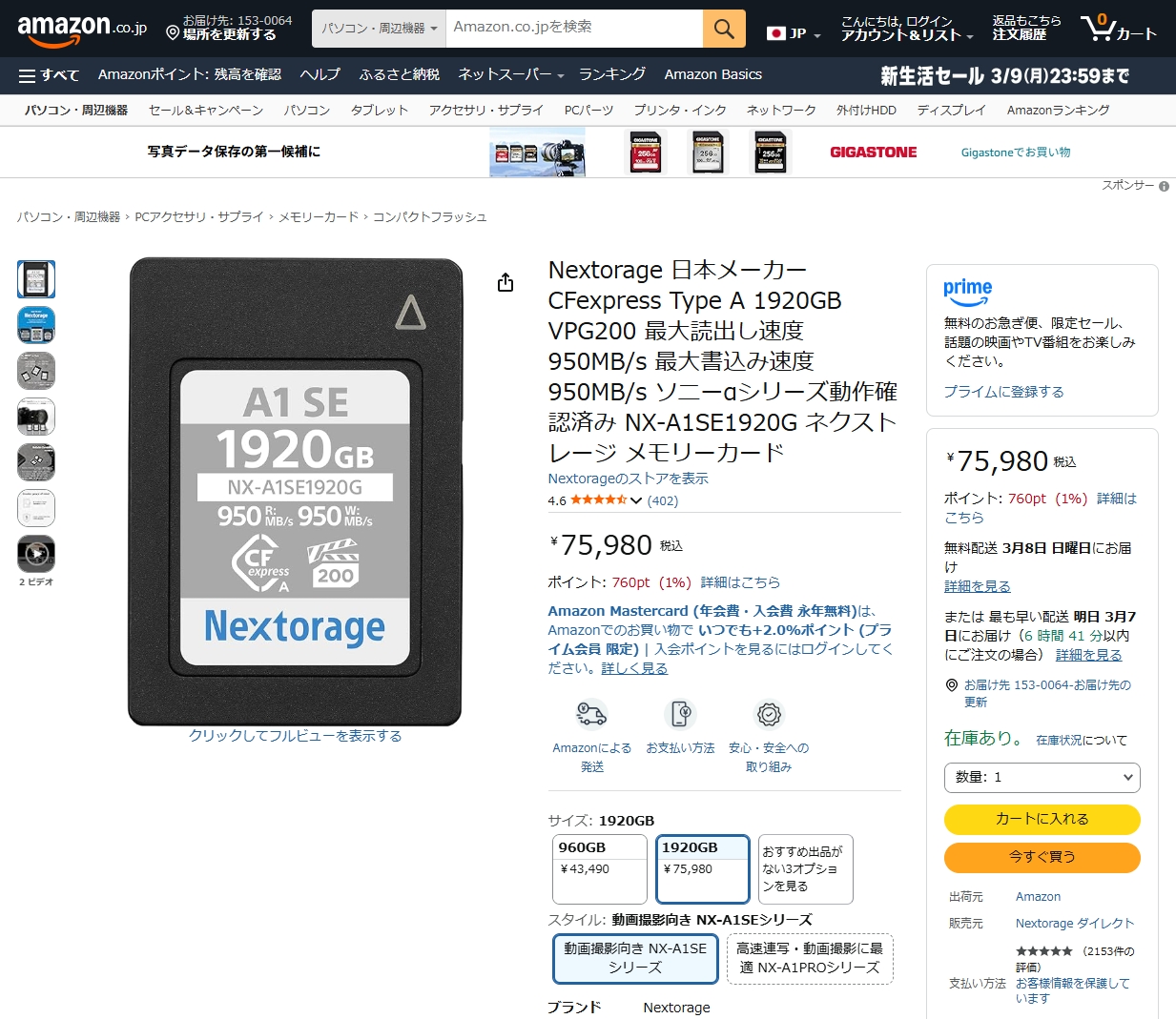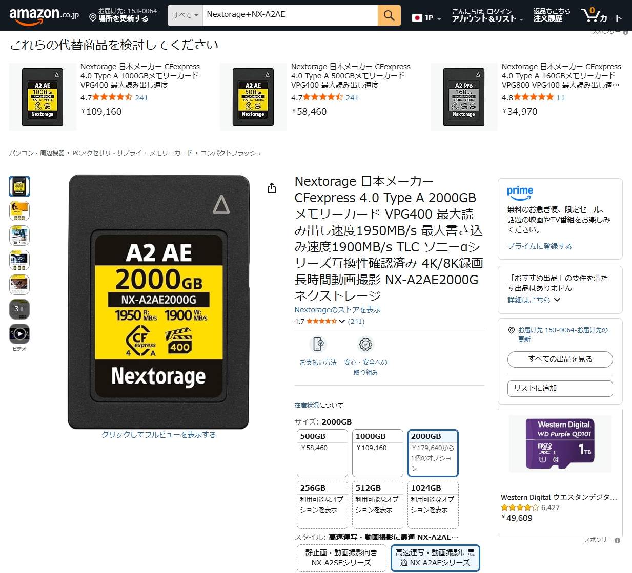 Nextorage 500GBと480GB、1000GBと960GB、2000GBと1920GBの組み合わせでは、容量が若干少ないもののソニーのCEA-Gシリーズのほうがずっと安く手に入れることができるようになっている。