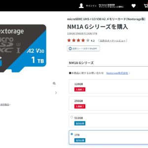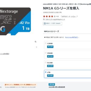 Nextorage製NM1A Gシリーズについて、昨今のメモリー・ストレージ用NAND高騰の影響で、ソニーストアで販売されているモデルが価格変更されていないため非常にお買い得で購入可能。