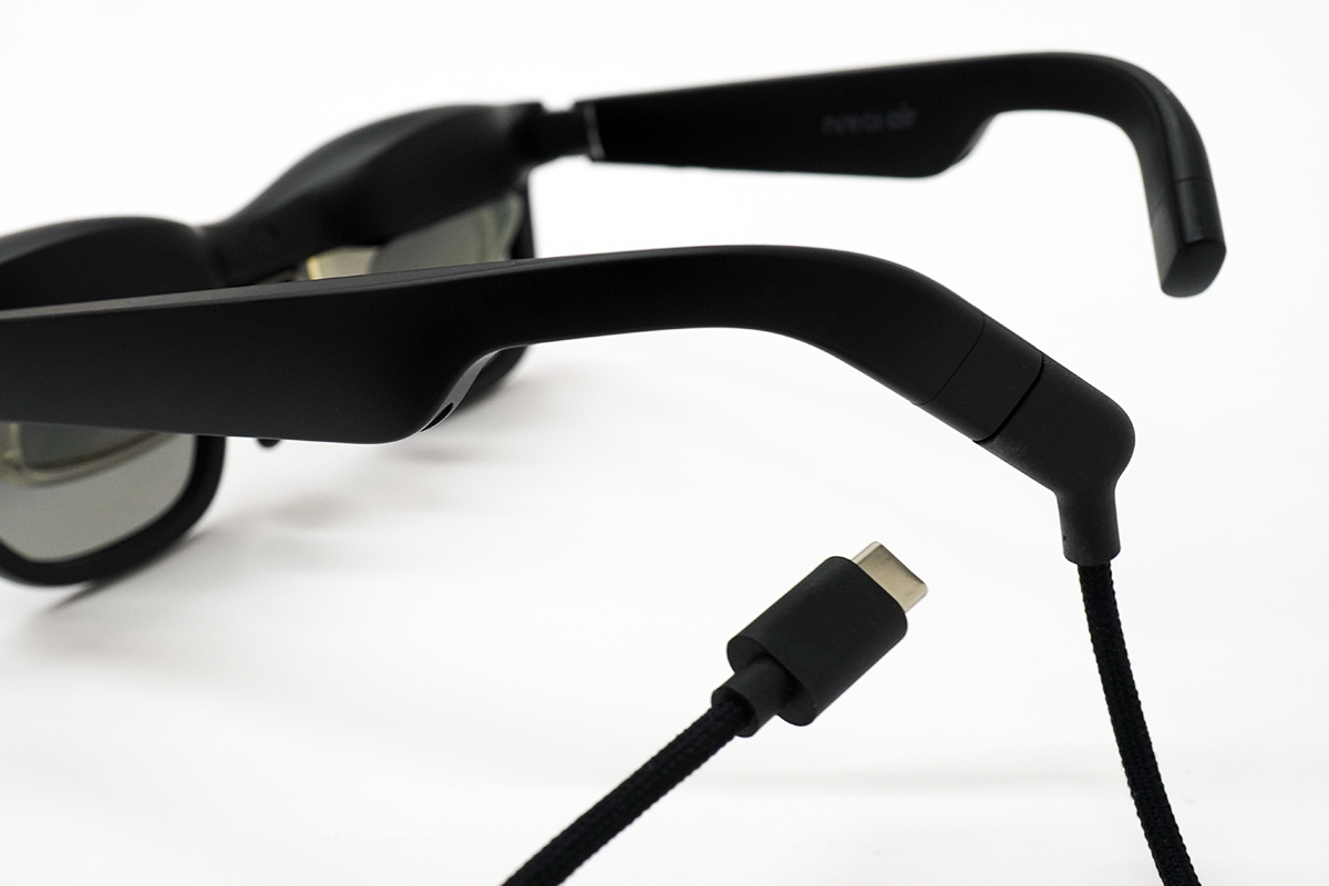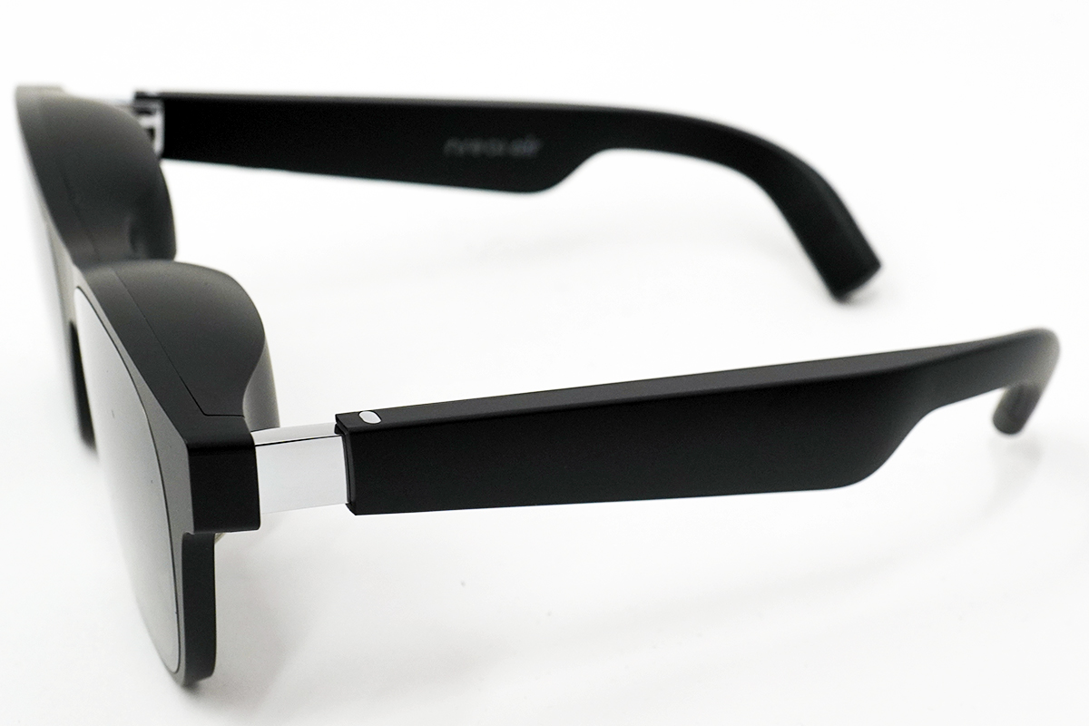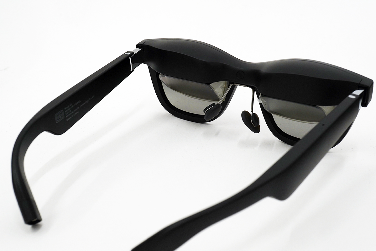 「Nreal Air」本体はたしかに、仰々しい「ヘッドマウントディスプレイ」と比べるとシンプルなサングラスの形っぽい。
