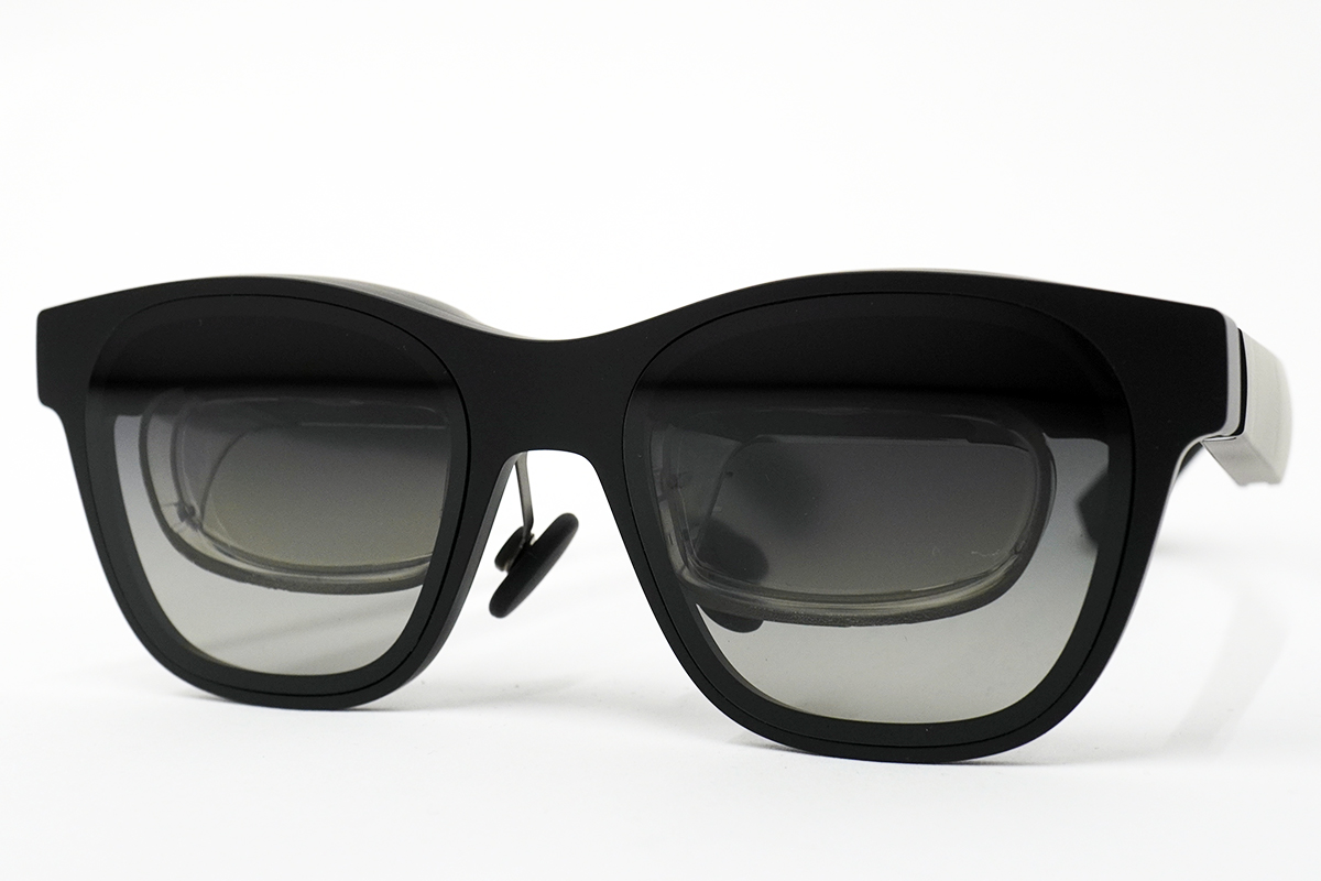 ただし、グラスの周辺全体を覆い尽くす「ヘッドマウントディスプレイ」と違ってオープンなサングラスタイプなので、外部映像がディスプレイに写り込んでしまって見えにくくなることもある。