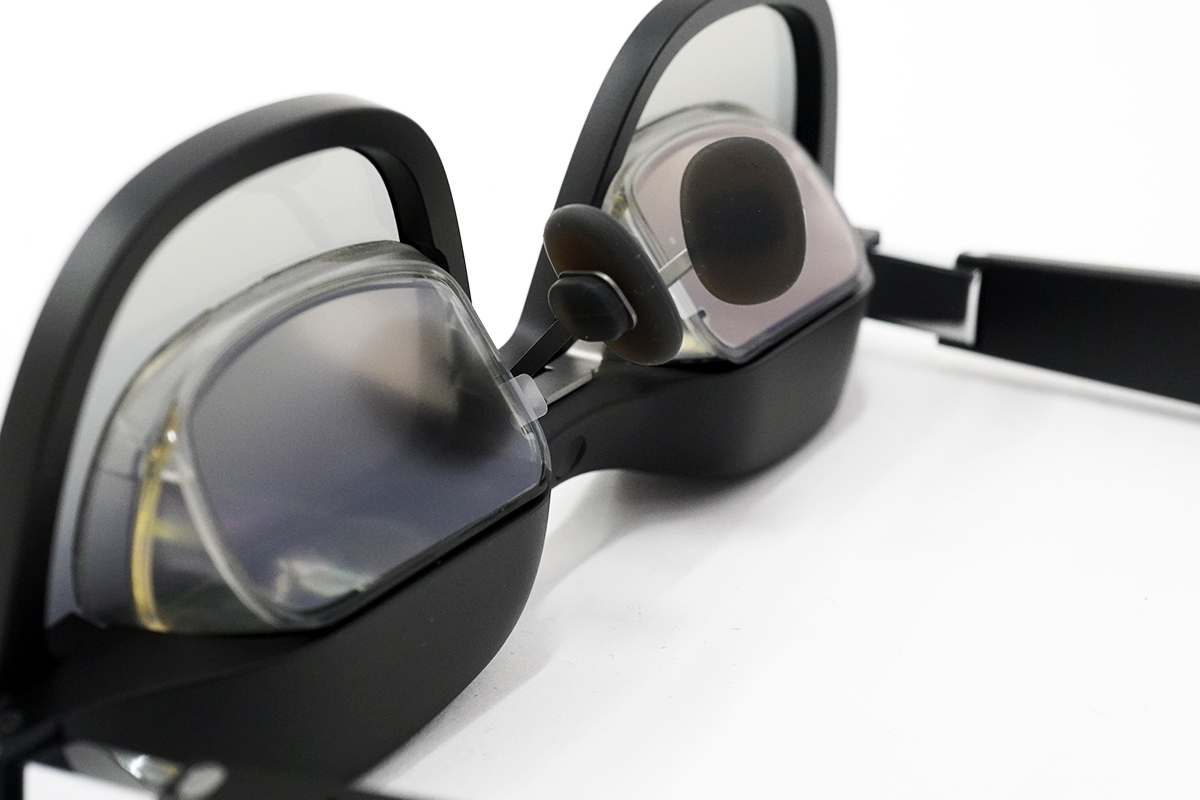 投影されるディスプレイの視度調整とかはなく、この鼻パッドのサイズで位置を調整することになる。