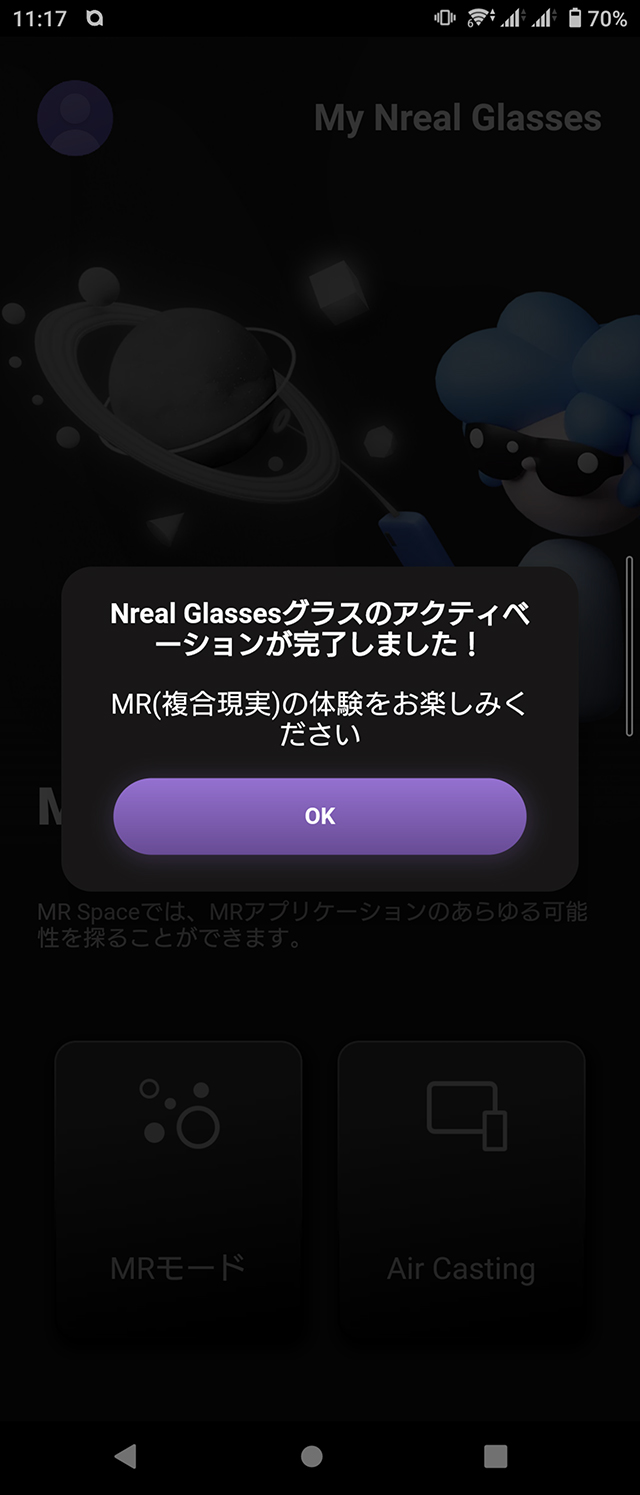 最初の難関となる「Nreal Glassesグラス」のアクティベーションが完了。