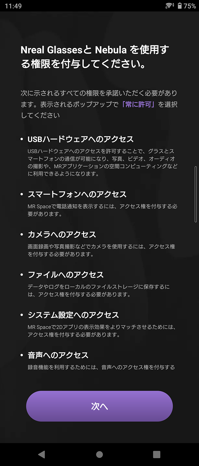 よし使うぞ!と思ったら「Nreal Air」専用のスマホアプリ「Nebula」をインストール必要がある様子。