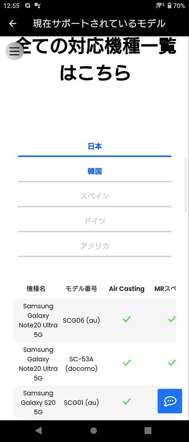 公式にある「Nreal Air」というか「Nebula」アプリのサポートする機種はこれだけ。
