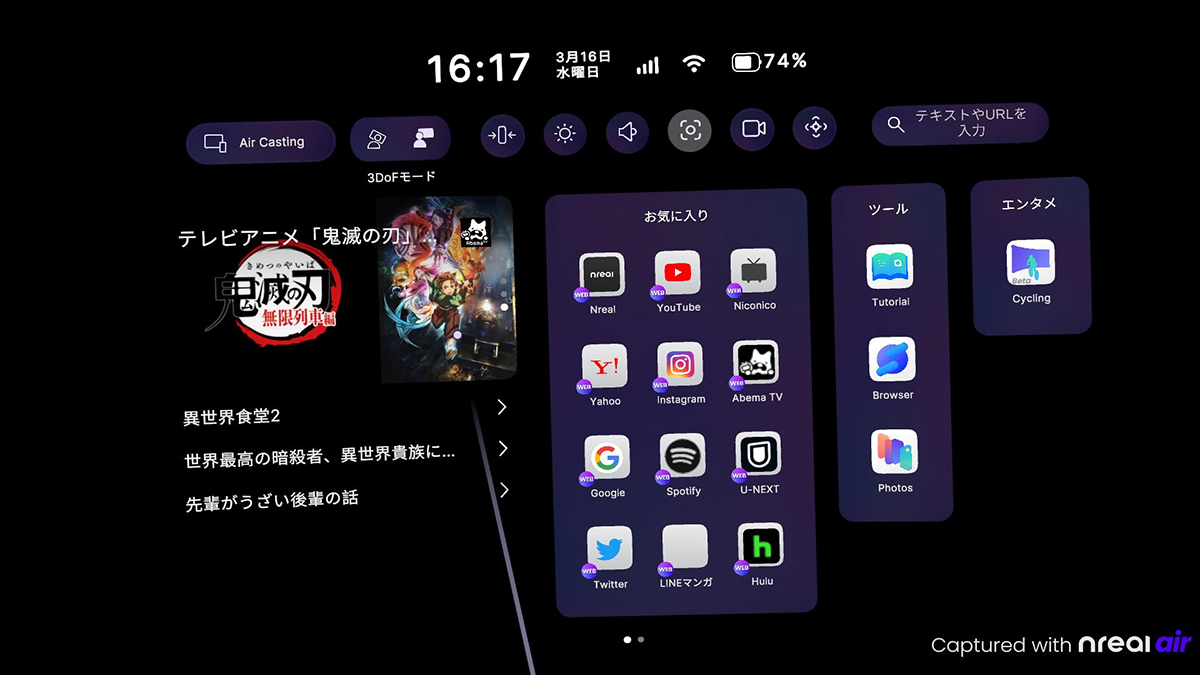 ●ARグラス「Nreal Air」を実際に使ってみた。