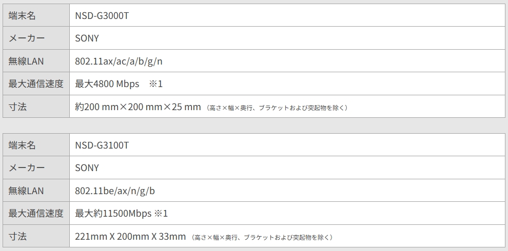 「なお、従来のソニー製ONU(NSD-G3000T)の提供も継続し、お客さまによるONUの指定・交換はできません。」となっていて、従来モデルの提供も続くようなので確実に最新モデルのONU(NSD-G3100T)が利用できるわけではない。