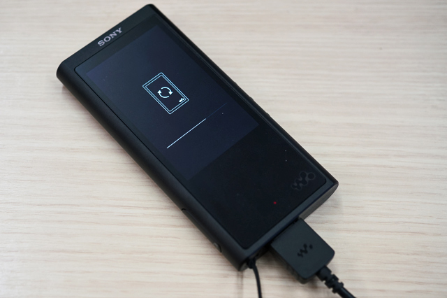 PCでファイルをダウンロードして、ウィザードに従って接続したウォークマンへアップデートが終わると、再起動して完了。