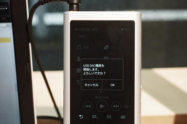 「NW-ZX300」をUSB-DACとして使うには、ホームメニューから【DAC】アイコンをタップして接続確認がでたらOKするだけ。