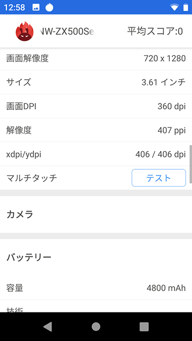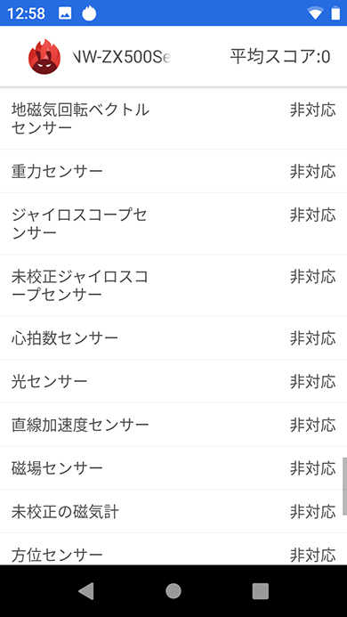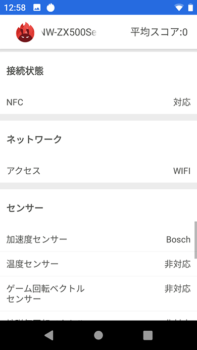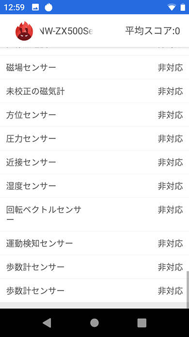 ただし詳細なデバイス情報は確認できる。(センサー類はほとんど備わっていないことがわかる。)