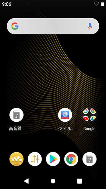 デフォルトでインストールされているアプリは、Google謹製アプリをのぞくと、「W.ミュージック」、「音声設定」「mora」となる。