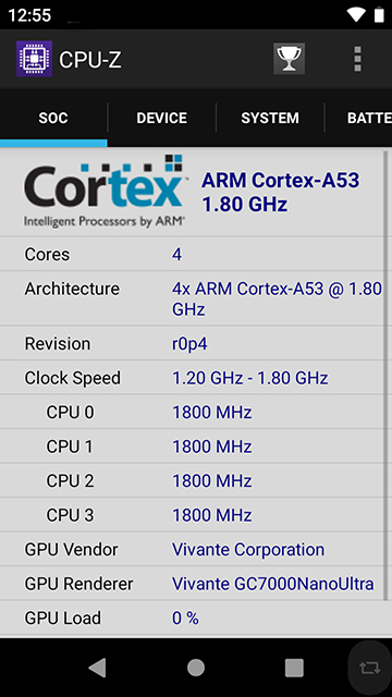 「CPU-Z」アプリによってわかるデータをチェックしてみる。