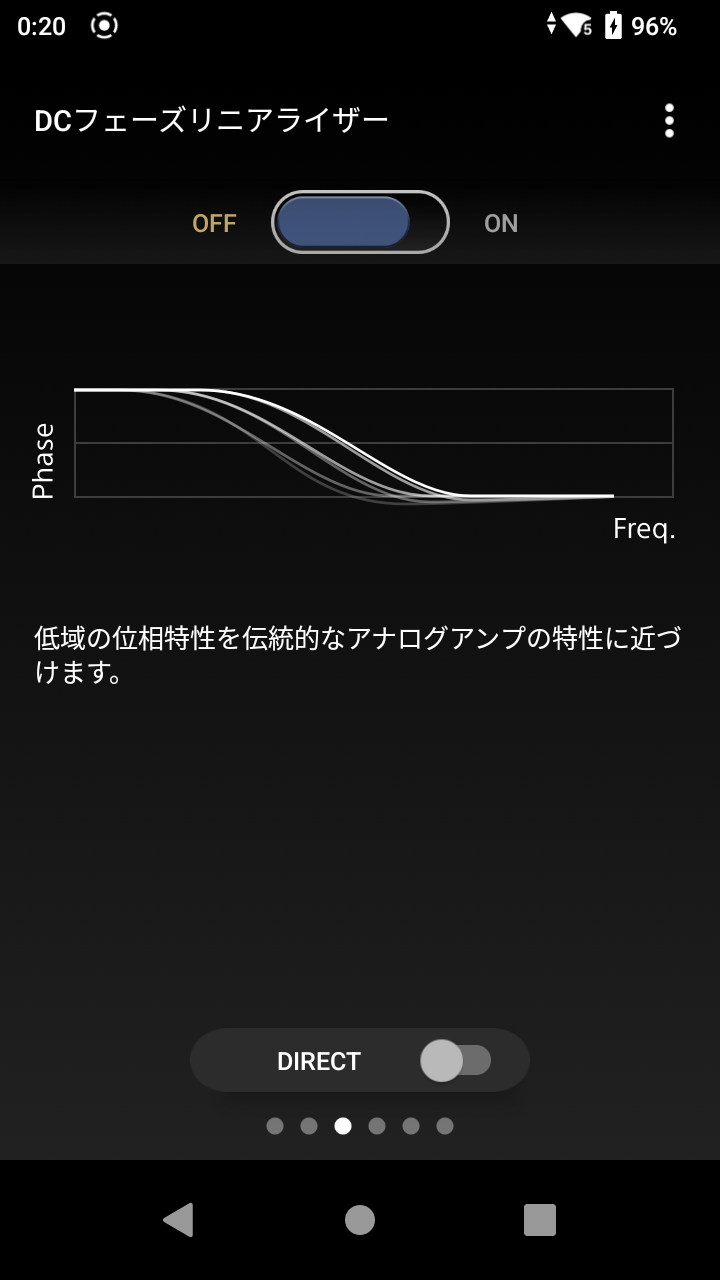 その他、低域の位相をコントロールすることで、アナログアンプの位相特性を再現する「DCフェーズリニアライザー」。