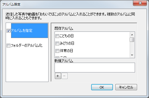 「アルバム設定」から、すでに出来上がってるアルバムに転送もできるし、フォルダごとアルバム化して転送もできる。