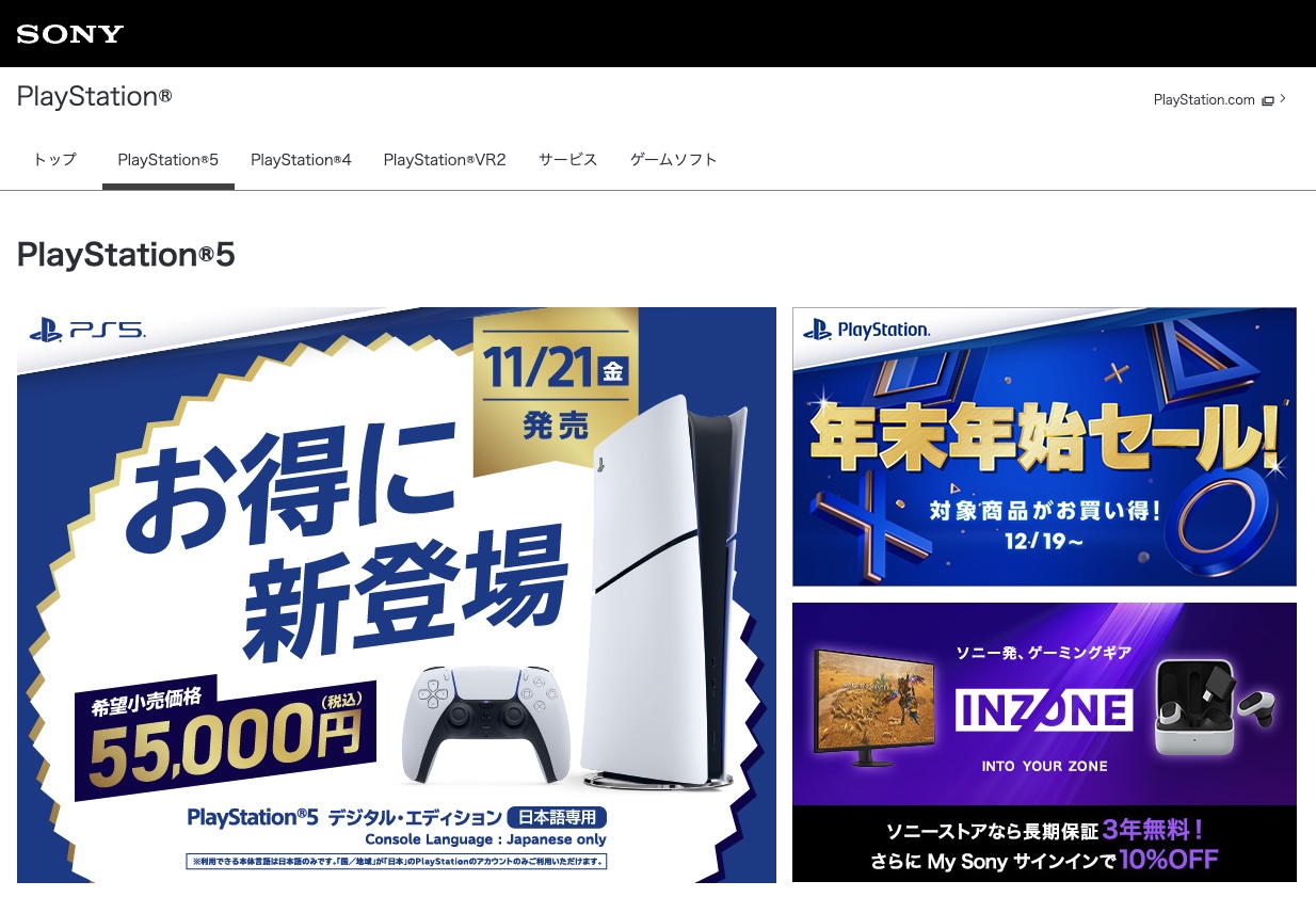 ソニーストア2025年 PlayStation5 年末年始セール開始!DualSense、PS Portal、PSVR2などが対象。