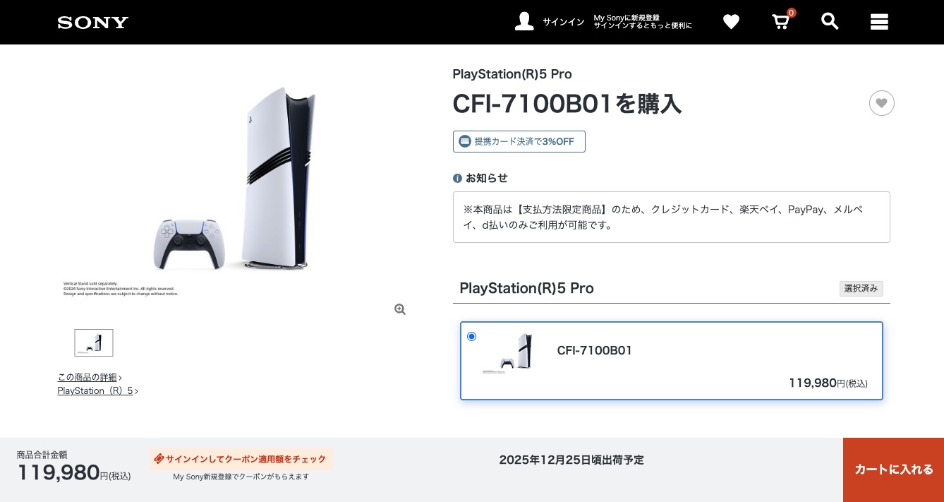 新型 PlayStation5 Pro が ソニーストアで販売開始。PS5 Pro新型番「CFI-7100B01」でも、2TBストレージ、販売価格は据え置き。