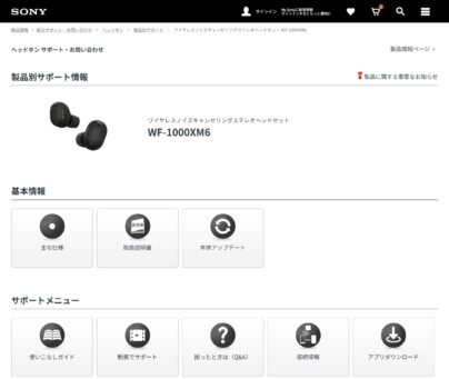 ソニー完全ワイヤレスイヤホン「WF-1000XM6」サポートページ公開。ヘルプガイド(Web取扱説明書)も掲載。