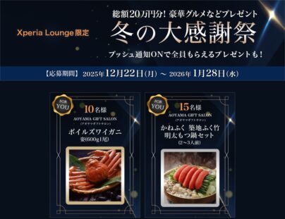 Xperiaユーザー向け「Xperia Lounge冬の大感謝祭キャンペーン」を2026年1月28日(水)まで開催。プッシュ通知ONで全員プレゼント。
