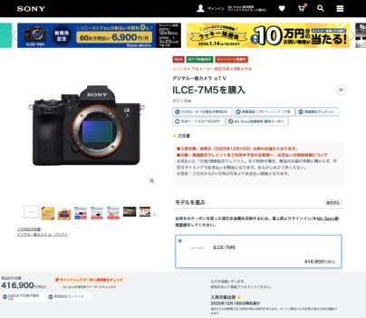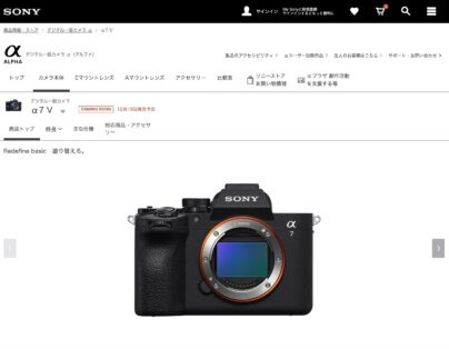 α7V「ILCE-7M5」予約開始。ソニーストア販売価格、416,900円(税込)。
