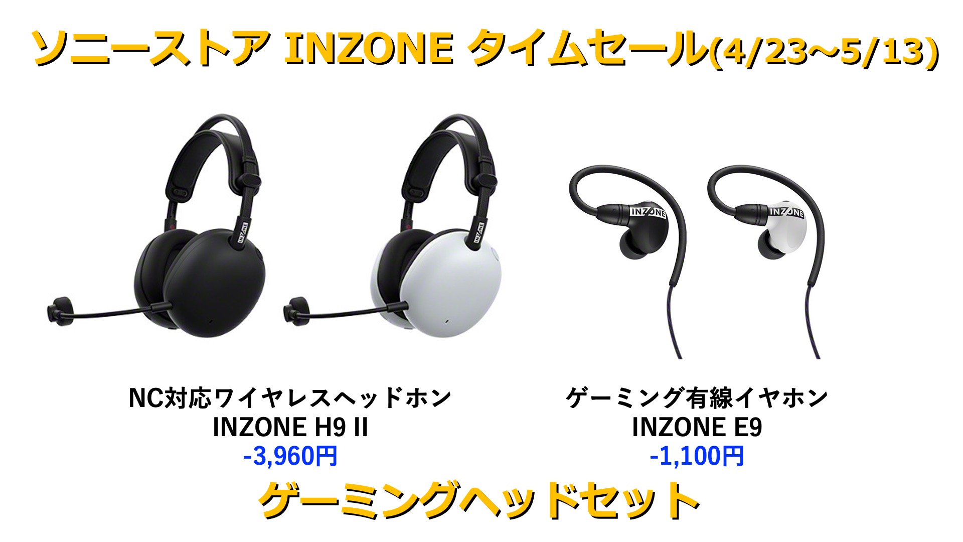 ゲーミングヘッドセット「INZONE H9 II」イヤホン「INZONE E9」、ソニーストア タイムセールを5月13日(水)まで開催。新製品発売にあわせて、最大約4千円値下げ。