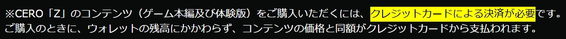 一つ注意点があるとすれば、18才以上のみ対象となるCERO Zタイトルの購入には、クレジットカードが必要になるため、クレジットカード・デビットカードは一つは持っておいたほうが良い。